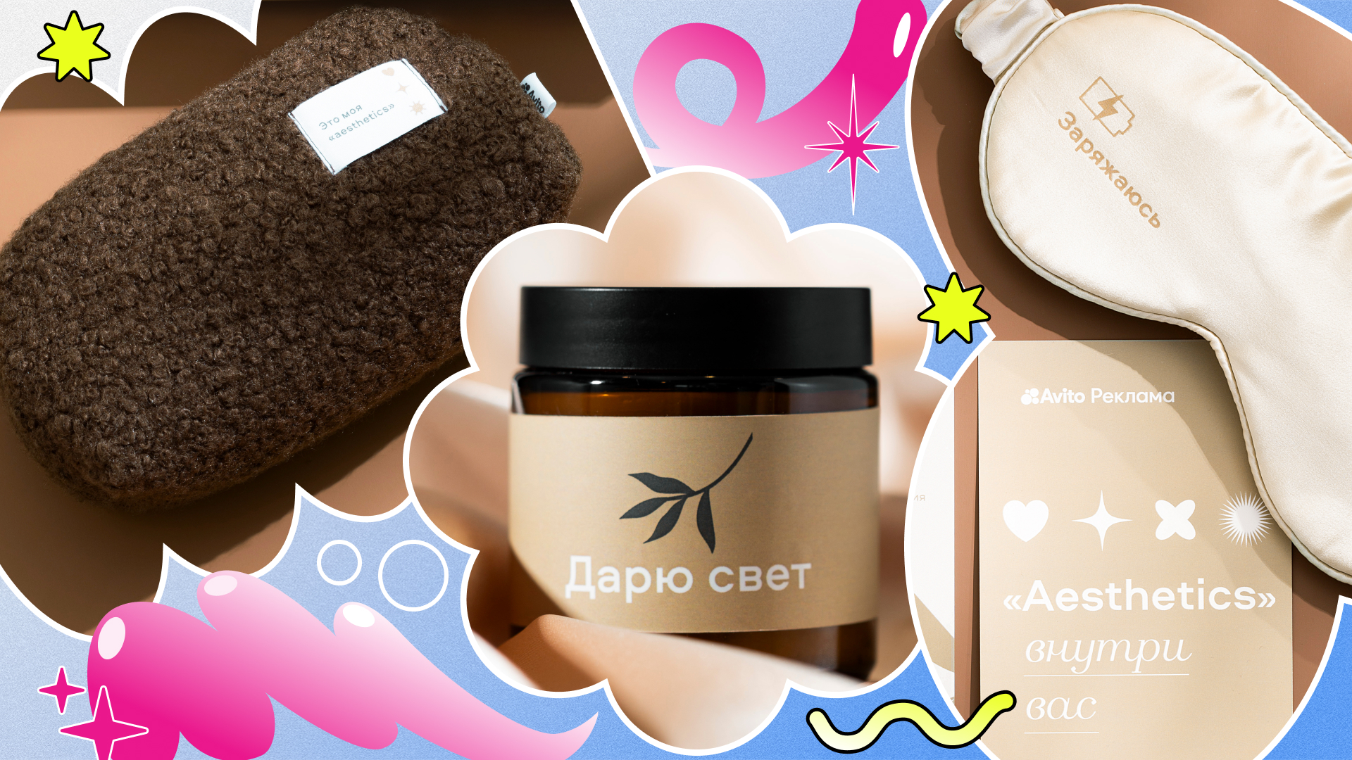 Подарочный сет на 8 Марта для сотрудниц компании Avito. Это «подарок-ресурс»: нежный бокс с набором для отдыха, ухода за собой и создания внутренней гармонии со своей атмосферой. Мы сшили косметичку из меха «Долли», а маску создали из нежнейшего натурального шелка — особенные материалы добавили в пак приятных тактильных ощущений, также передавая посылы концепта — мягкость, тепло, заботу. Основные копилайны на предметах касаются их назначения, крупный логотип присутствует только на открытке к подарку.