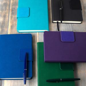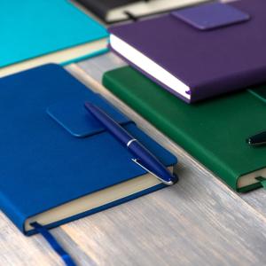 Универсальный деловой сет для партнеров, сотрудников или клиентов. Ежедневник с гибкой обложкой, аккумулятор с индикатором заряда и стильный вечный карандаш.