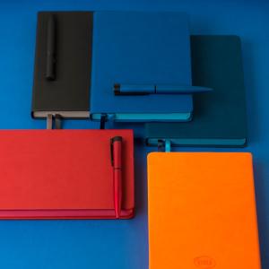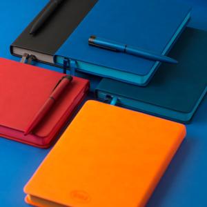 Универсальный деловой сет для партнеров, сотрудников или клиентов. Ежедневник с гибкой обложкой, аккумулятор с индикатором заряда и стильный вечный карандаш.