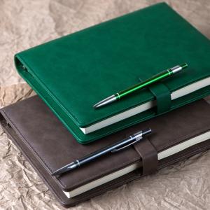 Универсальный деловой сет для партнеров, сотрудников или клиентов. Ежедневник с гибкой обложкой, аккумулятор с индикатором заряда и стильный вечный карандаш.