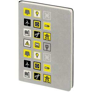 Универсальный деловой сет для партнеров, сотрудников или клиентов. Ежедневник с гибкой обложкой, аккумулятор с индикатором заряда и стильный вечный карандаш.