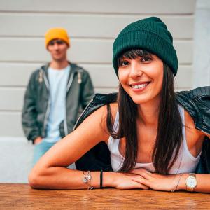 Шапка вязаная RIO с отворотом из материала rPET/рециклированного полиэстера