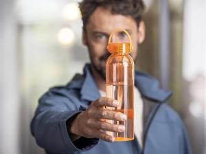 Бутылка для воды изготовлена из переработанного ПЭТ, сертифицированного согласно RCS, и оснащена удобной силиконовой ручкой для переноски. В соответствии с одобренным EFSA процессом переработки ПЭТ. Объем: 630 мл.
