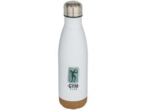 Бутылка для воды из нержавеющей стали с вакуумной изоляцией и пробковыми деталями в нижней части. Двойная изоляция стенок сохраняет напитки горячими или холодными в течение нескольких часов. Поставляется в подарочной коробке из переработанного картона. Объем: 500 мл. 90% нержавеющая сталь, 10% Пробка. упаковка FSC Mix Credit P5.1 CU-COC-877277.