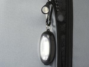 Фонарик с карабином Atria. Ультра яркий фонарик светится в режиме стабильного и мигающего света. Магнит сзади. В комплекте батарейки и карабин в цвет. Карабин не предназначен для скалолазания. АБС пластик.