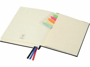 Блокнот Alder формата A5 изготовлен из переработанного пластика, имитирующего кожу, и имеет 192 листа из кремовой бумаги плотностью 80 г/м², оформленные в виде планировщика, идеально подходящего для ведения дневника и поддержания порядка в течение всего года. Имеет две эластичные резинки, три ленточные закладки (черная, красная и синяя), 200 разноцветных липких заметок (по 40 каждого цвета) и удобный бумажный кармашек для отдельных заметок. На задней обложке тиснением нанесен логотип JournalBooks, упакован в картонный слив-бокс белого цвета.