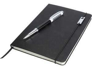 Набор Legato — это элегантное сочетание блокнота формата А5 и ручки-роллера. Ручка имеет верхний корпус из переработанной латуни, сертифицированной RCS, с серебряным хромированием, нижний корпус с цветным напылением, металлические хромированные аксессуары и логотип LUXE на среднем кольце. Цвет чернил: синий. Длина непрерывной линии: 400 метров. Диаметр пишущего узла: 0,7 мм. В комплект входит дополнительный стержень черного цвета. В блокноте 80 листов разлинованной кремовой бумаги плотностью 80 г/м², обложка из полиуретана, похожего на кожу, эластичная застежка, лента-закладка. Металлический шильд на эластичной застежке. Поставляется в картонной подарочной коробке.