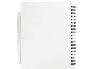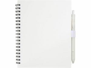 Блокнот Niove с мягкой обложкой изготовлен из переработанной пластмассы, имеет 70 нелинованных листов из бумаги плотностью 70 г/м². Блокнот имеет квадратные углы и петлю для ручки. Размер блокнота: 140 х 178 мм. Шариковая ручка также изготовлена из переработанной пластмассы. Цвет чернил: синий. Длина непрерывной линии: 1000 метров. Диаметр пишущего узла: 1,0 мм.