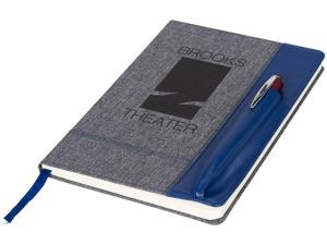 Блокнот формата А5 с мягкой тканевой обложкой. Декорирован вставкой из кожзама с удобным кармашком для пишущих принадлежностей. Подойдет для рабочих и личных записей. Благодаря дизайну и цвету, дополнит лаконичный деловой образ.