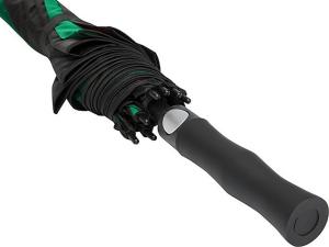 Зонт для гольфа Джефф с защитой от ветра оснащен просторным куполом из полиэстера, который надежно защищает нескольких человек от непогоды. Прочный стекловолоконный стержень и рама обеспечивают превосходную гибкость, гарантируя надежную устойчивость к сильному ветру. Практичная пластиковая ручка с кнопкой автоматического открывания обеспечивает быстроту и удобство эксплуатации. Контрастные панели купола являются прекрасной площадкой для смелого, привлекающего внимание брендинга — идеально подходит для мероприятий, рекламных акций или повседневного использования.