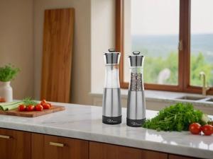 Набор механических мельниц для соли и перца "Duo" — это сочетание стиля, практичности и надежности. В комплект входят две мельницы, оснащенные высококачественным керамическим механизмом, который обеспечивает равномерное и эффективное измельчение специй. Приводятся в действие вручную, что позволяет легко контролировать степень помола. Изготовлены из прочной нержавеющей стали с элементами прозрачного акрила, что придаёт набору современный и элегантный вид. Эксклюзивный дизайн мельниц подчеркнет индивидуальность вашей кухни. Соль и перец не входят в комплект.