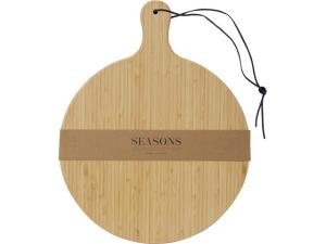 Разделочная доска Delys изготовлена из бамбука и идеально подходит для частных лиц и предприятий, которые предпочитают более экологичные товары. Диаметр доски: 30,5 см. Длина ручки: 8 см. Толщина доски: 1,4 см. Не подходит для микроволновой печи или посудомоечной машины.