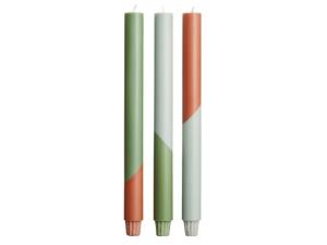 Свечи для ужина Eden отличаются яркой диагональной цветовой палитрой и изготовлены вручную из воска на растительной основе, не содержащего парафина. Они не имеют запаха, имеют фитиль из 100% хлопка и горят чисто. Каждая покупка способствует посадке дерева для фермеров в Африке и поддерживает специальный проект справедливой торговли на острове Ява, Индонезия. Комплект из трех штук. Время горения свечи: 18 – 20 часов. Воск из пальмовых ядер.