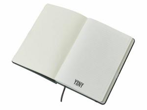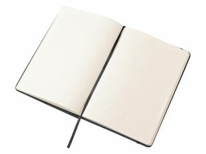Блокнот в твердой обложке из rpet-пластика с металлической шариковой ручкой. В обложке магнитный держатель для ручки. Также верхняя часть обложки трансформируется в подставку для телефона. В блокноте 80 листов бумаги 70 г/м2.