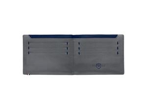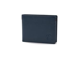 Ультратонкий бумажник из телячьей кожи, черной снаружи и синей внутри, с деликатной строчкой и тисненым логотипом S.T. Dupont. Внутри портмоне имеется семь отделений для кредитных карт и одно отделение для банкнот, снаружи — один прорезной карман.
