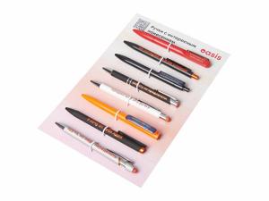 Промо-сет ручек с интересными нанесениями — это презентационный комплект, включающий 8 уникальных моделей с несколькими вариантами нанесения: гравировка и заливка полимерной смолой. В сете представлены самые хитовые позиции категории, а также новинки каталога периода зима-весна 2026 года. Все образцы аккуратно закреплены на стильной картонной подложке при помощи резинового фиксатора. На обратной стороне указаны названия и краткое описание моделей. Промо-набор — идеальный инструмент для презентаций: клиенты могут подержать ручки в руках, опробовать их на письме и наглядно увидеть различия между видами нанесения. При этом все самые важные модели собраны в одном легком и компактном наборе.