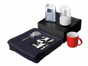 Материал товара: плед - флис 100% полиэстер; увлажнитель-аромадиффузор - АБС пластик, поликарбонат; кружка - костяной фарфор с покрытием soft-touch; открытка - бумага; мешок - нетканый материал (спанбонд)