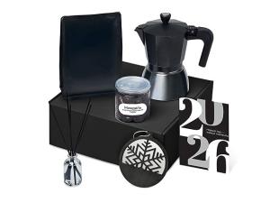 Новый год — новые моменты, которые хочется прожить по-настоящему. Вспомните детство, когда мы никуда не спешили, наслаждались каждым мгновением и делали то, что нам нравилось. Наборы серии Re:NY напоминают: важнее всего человек, а не его роль. Они дарят возможность замедлиться, отложить гаджеты и насладиться настоящим. Пусть новогоднее время станет паузой, наполненной тишиной, теплом и моментами, которые восстанавливают перед новым годом. Каждый набор — как мини-ритуал: согреться, замедлиться, почувствовать себя, поблагодарить и восстановиться после года, полного скорости, дедлайнов и шума. Это не о деловом «спасибо» — это о настоящем внимании. Это о том, чтобы сказать: «Я вижу, сколько ты сделал. А теперь — время для тебя». Набор «Re:Vive» — о том, чтобы начать день с энергии и вдохновения. Заварите свежий, ароматный кофе в гейзерной кофеварке и наслаждайтесь вкусным миндалём в шоколаде. Диффузор с ароматом еловых шишек и хвои наполняет пространство ощущением зимнего леса, а каждый глоток превращается в маленький ритуал бодрости и радости. Этот набор помогает оживить утро, подарить себе тепло и приятные моменты в любое время дня.