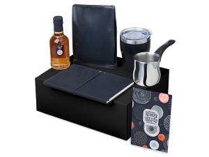 Материал товара: сироп - стекло, блокнот - искусственная кожа, бумага, турка - нержавеющая сталь, бакелит, кофе - пластик, термокружка - нержавеющая сталь, керамика, полипропилен, мешок - нетканый материал (спанбонд), коробка -картон