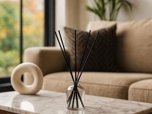 Ароматический диффузор "Ember" в лаконичном минималистичном оформлении — стильное и функциональное решение для создания уютной атмосферы. Прозрачный флакон без лишних деталей гармонично впишется в любой интерьер, а чёрные фибровые палочки обеспечат равномерное и продолжительное распространение аромата. Композиция «Перец и кожа» сочетает в себе тёплые пряные акценты и глубокие кожаные ноты, придавая пространству утончённый и слегка дерзкий характер. Емкость - 30 мл.