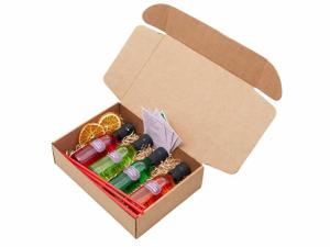 Подарочный набор, который превращает любой вечер в маленький праздник. В стильной упаковке собраны: - 4 бутылочки сиропов по 100 мл с яркими вкусами: Лайм, Маракуйя, Мята, Гренадин – классика коктейльного бармена. - 6 трубочек для коктейлей. - Подобранные специи для изящного декора напитков. - 4 карточки с рецептами – готовые идеи для быстрого приготовления коктейлей. Такой набор – универсальный и статусный подарок для партнёров, клиентов или сотрудников. Он подчеркнёт внимание к деталям, создаст атмосферу гостеприимства и станет стильным акцентом любого корпоративного мероприятия. В комплект входит: - бутылки с сиропом для коктейлей 100 мл: "Лайм", "Маракуйя", "Мята", "Гренадин" - трубочки для коктейля 6 шт. - специи для декора коктейля - карточки с рецептами 4 шт.