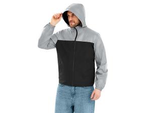 Streetwear-ветровка с контрастным дизайном: верх переда и спинки, рукава и капюшон — из светоотражающей ткани, низ — из прочной чёрной полиэстеровой ткани. Модель на подкладке, со спинкой длиннее переда. Детали: водонепроницаемая молния, боковые наклонные карманы с листочкой, манжеты на резинке, удобный капюшон, кулиска по низу. • Заметность в темноте — светоотражающая верхняя часть повышает безопасность. • Защита от ветра и дождя — влагостойкая молния и плотная ткань. • Комфортная посадка — удлинённая спинка и подкладка для межсезонья. • Универсальный городской стиль — легко сочетается с повседневным гардеробом.