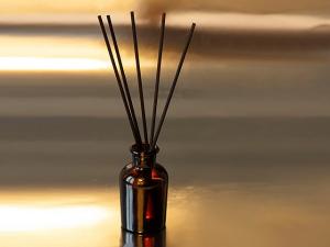 Комплектность: коробка, стеклянная бутылочка с аромажидкостью, фибровые палочки - 5 шт