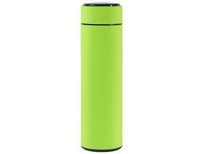 Термос из нержавеющей стали, покрытый цветным soft touch, с крышкой, в которой встроен термометр и LED дисплей, показывающий температуру внутри термоса. Объем: 500 мл. Упаковка: каждый термос в крафт коробке.