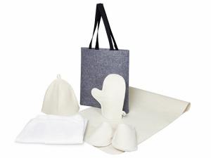 Банный набор "Healing" для настоящего ценителя сауны: коврик-лежак, мужской вафельный килт, рукавица, шапка, тапочки — всё в стильном фетровом шоппере.