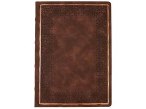 Недатированный ежедневник "Royal" формата А5 с твердой обложкой из искусственной кожи с имитацией нубука украшен художественным бронзовым и блинтовым тиснением. Внутри 256 страниц, выполненных из качественной бежевой бумаги в линейку плотностью 100 г/м². Два шелковых ляссе в цвет обреза блока и обложки облегчают навигацию по записям. Французский корешок дополнительно декорирован изящным бронзовым тиснением в виде виньеток. Скругленные углы обложки и блока подчеркивают стильный дизайн изделия, а блеск бронзового обреза дарит ежедневнику благородный и роскошный внешний вид.