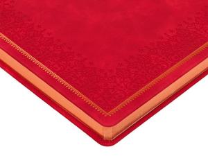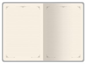 Недатированный ежедневник "Royal" формата А5 с твердой обложкой из искусственной кожи с имитацией нубука украшен художественным бронзовым и блинтовым тиснением. Внутри 256 страниц, выполненных из качественной бежевой бумаги в линейку плотностью 100 г/м². Два шелковых ляссе в цвет обреза блока и обложки облегчают навигацию по записям. Французский корешок дополнительно декорирован изящным бронзовым тиснением в виде виньеток. Скругленные углы обложки и блока подчеркивают стильный дизайн изделия, а блеск бронзового обреза дарит ежедневнику благородный и роскошный внешний вид.