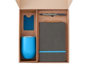 Материал товара: картхолдер - силикон, термокружка - нержавеющая сталь, блокнот - термо PU с зернистой структурой, ручка - пластик с покрытием soft-touch, ланчбокс - 50% пшеничное волокно, 50% ПП-пластик, открытка - бумага, коробка - картон