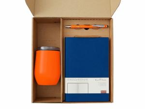 Материал товара: ежедневник - искусственная кожа, термокружка - нержавеющая сталь снаружи, полипропилен внутри, ручка - металл c покрытием soft-touch, ситечко - нержавеющая cталь