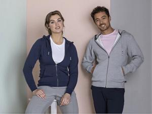 Свитер Arora с капюшоном и застежкой-молнией на всю длину. Стандартный покрой. Резинка 2х2 на боковых вставках, поясе и манжетах. Карман кенгуру. Мужская и женская модели с завязками на капюшоне. Подкладка внутри капюшона. Подкладка на полумесяце. Атласная лента внутри горловины. Принт лого сзади в тон изделия. Серебристые люверсы с лого. Трикотаж: 80% хлопок и 20% полиэстер, чесаная внутренняя сторона. 300 г/м².