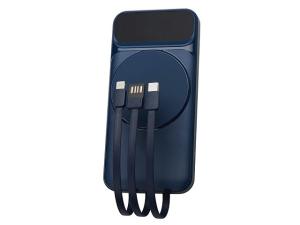 Функциональный и удобный внешний аккумулятор на 10 000 мАч обеспечивает быструю зарядку как по кабелям, так и беспроводным способом, поддерживая современные стандарты скорости. Цифровой дисплей на верхней панели мгновенно показывает точный уровень заряда, а встроенные кабели Lightning, USB-C и входной USB-A устраняют необходимость в дополнительных проводах — всё, что нужно для каждодневного использования, уже есть в самом гаджете. Компактные габариты, сопоставимые с размером смартфона, делают устройство идеальным для путешествий и повседневного использования. Сильные магниты гарантируют надёжное крепление при беспроводной зарядке. В комплекте есть силиконовая накладка: перед использованием удалите защитный стикер и прикрепите её к корпусу. - Встроенные кабели (Lightning, USB-C, USB-A) — не нужно искать дополнительные кабели: зарядка других устройств и подзарядка аккумулятора происходят через встроенные кабели. - Сильные магниты - Цифровой дисплей уровня заряда и статуса зарядки - Функции быстрой проводной и беспроводной зарядки - Упаковка с удобным и быстрым открытием