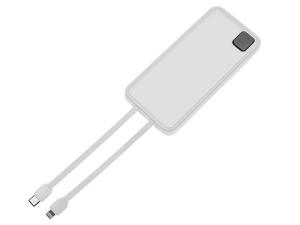 Удобный внешний аккумулятор с встроенными кабелями USB-C и Lightning — ваш надежный партнер в путешествиях, на встречах и в повседневных задачах. Цифровой дисплей в реальном времени показывает точный остаток заряда, а компактные габариты делают его таким же удобным, как смартфон. Прочный корпус из переработанного АБС-пластика и емкость 10000 мАч обеспечивают долгую работу даже при интенсивном использовании. Идеальный выбор для тех, кто ценит комфорт и функциональность в одном устройстве. Продуманная упаковка: для открытия просто потяните за язычок, и появится гаджет с нанесением. - Встроенные кабели USB-C и Lightning — больше не нужно искать провода - Цифровой дисплей с точным отображением заряда - Удобная зона под нанесение логотипа - Компактный размер, сопоставимый с телефоном — легко помещается в карман, сумку или портфель. - Упаковка с удобным и быстрым открытием