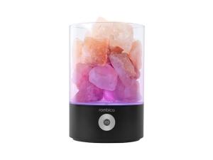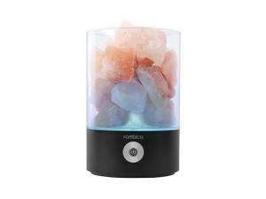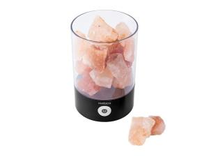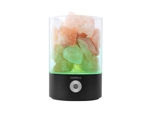 Светодиодный ночник имеет три режима свечения: теплый белый свет, автоматически сменяемую RGB-подсветку и фиксацию текущей RGB-подсветки. Возможность настраивать комфортную яркость освещения с помощью одной сенсорной кнопки. Главный декоративный элемент ночника выполнен из кристаллов природной соли. Под действием нагревания лампы выделяют отрицательные ионы, а вместе с ними мелкие частички соли, в результате этого микроклимат в помещении улучшается. Благодаря элегантному дизайну и небольшому размеру ночник удачно дополнит любой интерьер.