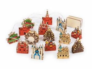 Новогодняя ёлочная гирлянда постоянного свечения с цветными фигурками достопримечательностей из натуральной березовой фанеры сделает процесс украшения ёлки или дома не только увлекательным, но и познавательным! Гирлянда состоит из 14 парных фигурок достопримечательностей и центрального элемента в виде снежинки. Снежинка и корпус батарейного блока имеют дополнительные съемные панели, которые поставляются в наборе в виде отдельных деталей и крепятся на изделие на двусторонний скотч. Эти элементы специально предназначены для нанесения и придания презенту уникальности. Гирлянда работает от 2-х батареек АА, которые входят в комплект. На гирлянде изображены следующие достопримечательности: Спасская башня (Москва) Иволгинский дацан Хамбын Хурээ (с. Верхняя Иволга, респ. Бурятия) Государственный исторический музей (Москва) Казанский кремль (Казань, респ. Татарстан) Спас на крови (Санкт-Петербург) Кёнигсбергский кафедральный собор (Калининград) Архитектурный ансамбль «Кижи» (респ. Карелия)