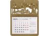 Настенный перекидной календарь имеет необычную «обложку», в роли которой выступают фанерные крышки. Нижняя крышка сплошная, верхняя — резная, ажурная, с вырезанным новогодним пейзажем и большим полем под нанесение логотипа или надписи, которая органично впишется в облик календаря. Квартальный блок календаря изготовлен из офсетной бумаги 90 грамм и включает в себя 12 листов. Каждый лист содержит крупный календарь на текущий месяц и два малых на предшествующий и будущий соответственно, что очень удобно для планирования. В комплект входит красный курсор-бегунок для выделения текущей даты.