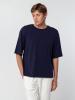 Оверсайз футболка с коротким рукавом. Круглый вырез горловины обработан рибом 2х1. Боковые швы. Широкая двойная отстрочка по рукавам и низу.