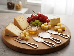 Комплектность: вилка для сыра 13,5 см, нож листовидный 13,3 см, нож-лопатка 13,3 см, нож-топорик 13,3 см
