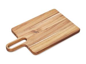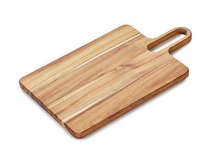 Разделочная доска «Вэй» выполнена из массива акации — прочного и влагостойкого материала, который устойчив к появлению царапин и деформации. Благодаря плотной структуре древесина не впитывает запахи и соки продуктов, что делает доску гигиеничной и безопасной в использовании. Благодаря удлиненной ручке доска удобно лежит в руке, а большое отверстие позволяет с легкостью повесить доску на крючок для хранения. Доска «Вэй» подходит для нарезки овощей, мяса, зелени, а также для подачи закусок. Компактная, практичная и стильная — она станет удобным помощником на кухне.