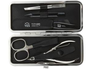 Практичный и функциональный маникюрный набор известного немецкого бренда YES - идеальный и надежный помощник в создании аккуратного и красивого маникюра. Благодаря компактным размерам набор помещается в любой карман или сумочку, и в случае необходимости будет всегда под рукой. Элегантный чехол выполнен из натуральной итальянской воловьей кожи, инструменты изготовлены из углеродистой стали превосходного качества. Технология автоматизированного производства в комбинации с ручной заточкой обеспечивает неизменно высокое качество инструментов. Маникюрный набор - универсальное решение для ежедневного использования. Комплектация: • Ножницы для кутикулы: углеродистая сталь, никелированное покрытие, фестончатое лезвие, 9 см • Кусачки для кутикулы: углеродистая сталь, хромированное покрытие, 10 см • Пинцет скошенный: углеродистая сталь, никелированное покрытие, 8 см • Пилка металлическая: углеродистая сталь, хромированное покрытие, 10 см • Шабер двусторонний: пластик