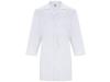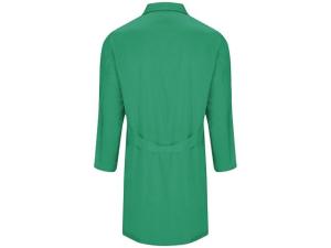 Халат для персонала с длинными рукавами. · Воротник с лацканами. · Центральная застежка на 5 пуговиц в тон. · Один нагрудный карман и два кармана по бокам. · Пояс сзади.