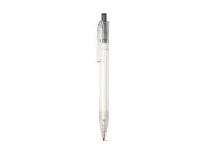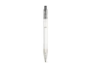 Шариковая ручка из прозрачного переработанного PET с цветной кнопкой. Пишет черным цветом. ø11 x 142 мм.