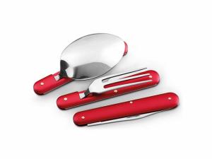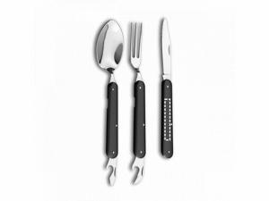LERY. Набор столовых приборов из нержавеющей стали, Черный. Набор для из 3 складных кухонных принадлежностей: одной ложки, одной вилки и одного ножа из нержавеющей стали. Этот набор поставляется в чехле 600D. Вид нанесения, рекомендуемый поставщиком: гравировка, тампопечать, трансфер