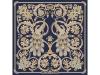 Платок «Русское золотное шитьё» посвящён драгоценному старинному русскому рукоделию. Дошедшие до нас памятники шитья, выполненные русскими мастерицами, являются произведениями высокой культуры. В изделиях сочетаются талант художника и тонкий вкус, духовное богатство, исполнительское мастерство вышивальщиц. В центре композиции излюбленный сюжет традиционного русского орнамента - царственные павлины. Они горделиво восседают в обрамлении из фантастических цветов и виноградных лоз. Павлин в русской культуре — это жар-птица, которая несет в себе солнечную энергию развития, поэтому это птица семейного счастья. Они всегда рассаживаются на свадебных рушниках. Павлин за красоту своих перьев стал символом расцвета, молодости. Про стройную, красиво одетую девушку говорят: «Будто пава плывет». Мы старались воссоздать в рисунке сложную фактуру древнего промысла, придав золотошвейному искусству новую форму. Желаем всем обладательницам платка «Русское золотное шитьё» наполниться энергией и тёплом посланий предков. А изысканная цветовая гамма платка сделает этот аксессуар незаменимым в гардеробе любой леди, неравнодушной к современной моде. Дизайн: Нина Ручкина, Наталия Александрова.