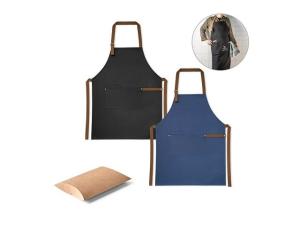 Фартук из 100% хлопка (300 г/м²) с металлическими деталями. С 3 многофункциональными карманами и боковой планкой (чтобы повесить кухонное полотенце). Легко регулируемый шейный ремень. 680 x 900 мм