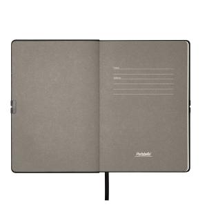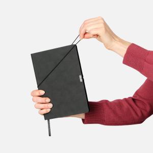 Горизонтальная резинка, фиксирующая обложку, дополнена металлическими элементами, которые не только защищают обложку от повреждений, но и служат стильным акцентом. Матовый срез в тон обложки и светло-кремовые страницы из гладкого, слегка шелковистого офсета подчеркивают изысканность дизайна. Атласное ляссе гармонично завершает образ этого элегантного ежедневника.