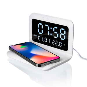 Новые настольные часы с беспроводной зарядкой от Portobello в лаконичном дизайне.
